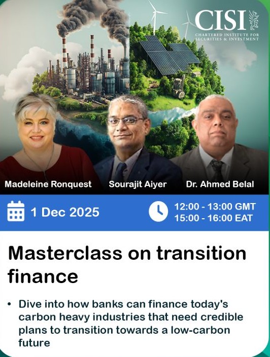 4. Chartered Institute for Securities & Investment (CISI)’s Kenya Chapter: Delivered a virtual module on transition finance concept, principles, instruments and business benefits, as part of a Transition Finance Masterclass organized by CISI’s Kenya Chapter, targeting bankers in Kenya and other CISI member countries.